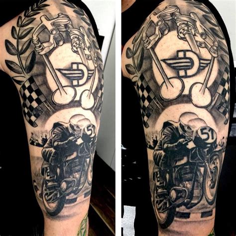 Yes, we love tattoos, and we love to share them with you. Grey ink motorcycle tattoo on man left half sleeve. Next luxury / cars and rides, tattoo ideas. Biker rib tattoo the cog with a rider inside it represents the fact that the life of a biker revolves around his passion. The engine tattoo is a very popular one.