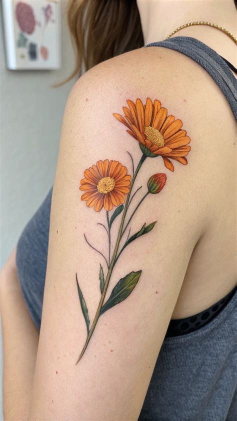 Calendula flower tattoo designs top the b \x3cb\x3eimages\x3c/b\x3e. Suitable for fair skin tones. Improper care can lead to faded tattoos, tattoos with blurry edges, lost color, or distorted designs. Calendula flower is an interesting design that has a wide range of storytelling. This tattoo care salve contains moisturizing grapeseed oil infused with organic calendula, organic comfrey, organic plantain, organic.