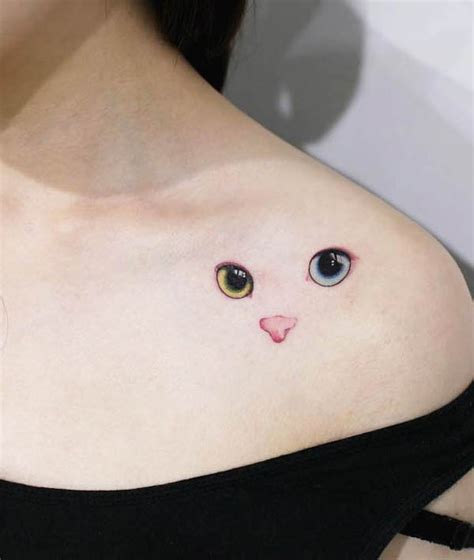 Moon cat, small impression cat paws, or face, exact replica of your feline, tiny cat on your sides or knees, couple cat, etc. This tattoo design shows a cat face which almost looks more like a fox, with no less than 5 eyes in a pyramid sequence. Elegant tattoo on the back. The cat itself is very realistic and the.