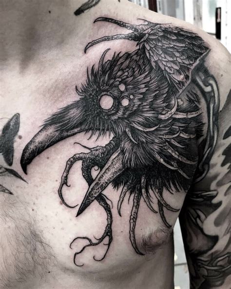 Their reactions and personality are bound to generate the kind of reaction from those who share the same persona. Crow on tree without leaves tattoo. Mirrored crow tattoo on full chest. Crow tattoos funny crow tattoo on bicep. These chest tattoos only are seen when you take off your shirt while on the beach or swimming pools.