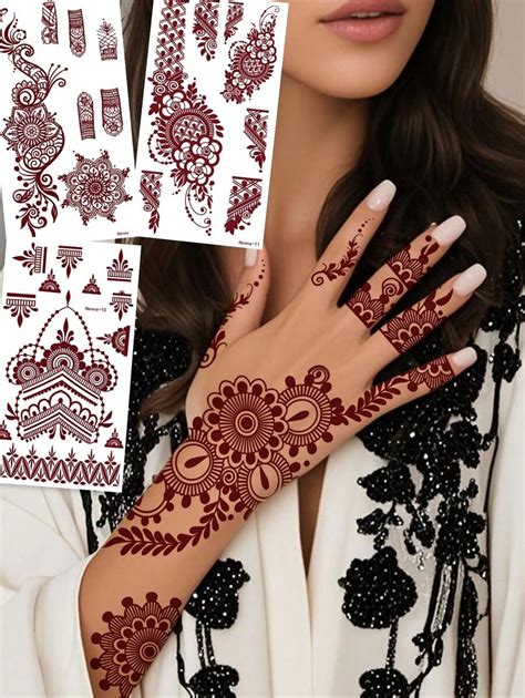 It’s bold and classy at the same time! On the feet and legs, arabic henna was used to create a flowery pattern. New design henna hand body tattoo sticker waterproof style variety temporary tattoo henna stencil.