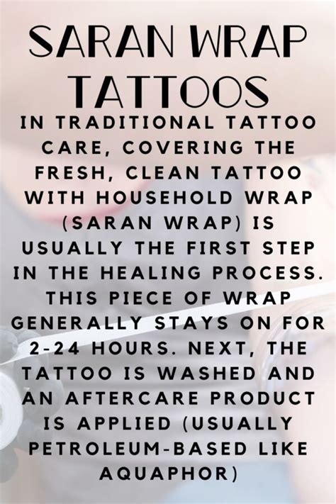 “ never let a tattooer wrap your tattoo in saran wrap,” angel warned. Tattoo artists normally apply plastic wrap or saran wrap on the fresh body art to ensure that their tattoos stay moist after getting done. The tattoo will scab over. So you want, you want the tattoo wrapped in a sterile bandage, something that’s absorbent. When you wake,.
