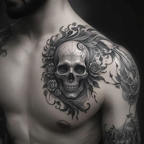 Skull tattoo design on shoulder; Read more in our magazine. Skull tattoo design on shoulder. A dark rose that sits firmly on top of the shoulder. The multiple colors used to define this tattoo is.